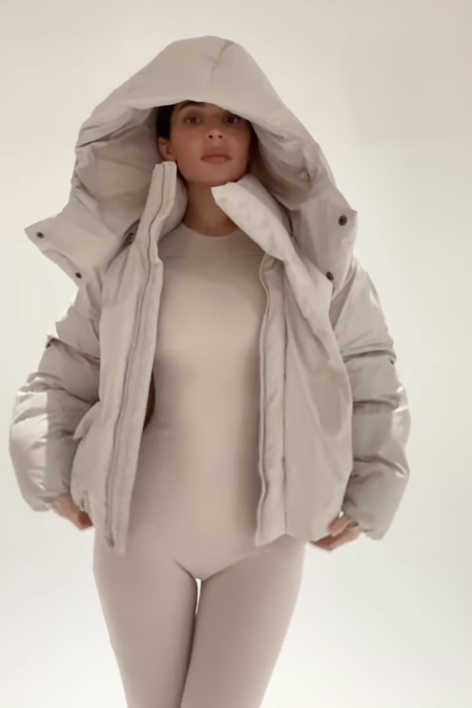 Trên tài khoản Instagram với 399 triệu lượt theo dõi, Kylie Jenner đăng video giới thiệu một số mẫu trang phục mới thuộc bộ sưu tập thứ hai của thương hiệu Khy do cô sáng lập. Bà mẹ hai con khoe đường cong trứ danh qua bộ catsuit màu ngà, đồng thời giới thiệu vài kiểu áo phao ấm áp.