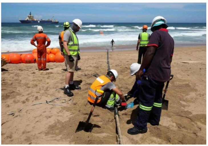 Công nhân lắp đặt cáp quang biển ở Nam Phi năm 2023