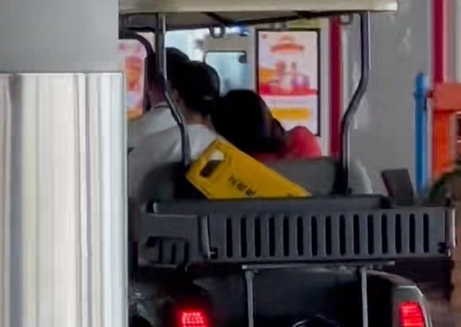 Cặp đôi cách nhau 11 tuổi thoải mái thể hiện những cử chỉ tình cảm tại sân bay.
