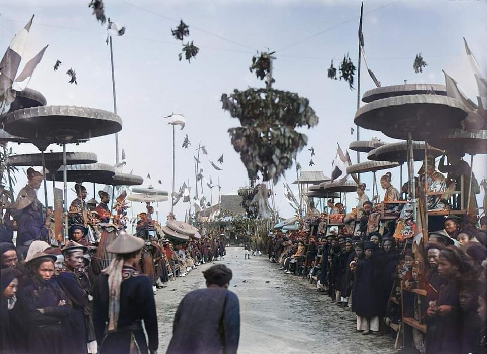 Nam Định,27/12/1897. Khóa thi 3 năm 1 khoa. Các cử nhân chờ đợi, sau cuộc diễu hành, khi kết thúc xướng danh đỗ