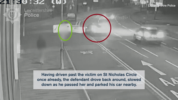 Camera an ninh trên đường phố cho thấy hắn đã phanh gấp sau khi lái xe ngang qua cô gái, trước khi rẽ trái vào Phố Castle và đỗ xe. Khi cô gái đi dọc theo Southgates rồi rẽ vào đầu đối diện Phố Castle, Mohammed bắt kịp cô và họ bắt đầu nói chuyện.