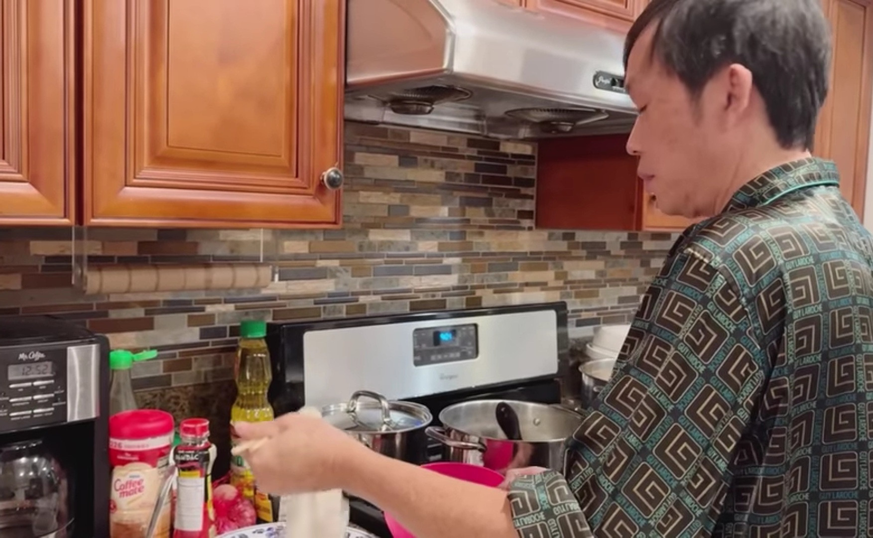 Sau khi đưa đồ ăn tận nơi cho Minh Nhí, Thúy Nga tới nhà Hoài Linh chơi và được đích thân đàn anh vào bếp nấu bún cá, múc ra bát cho ăn. Dù nổi tiếng và giàu có, nhưng Hoài Linh vẫn bình dân và chịu khó vào bếp nấu nướng mời bạn bè, người thân ăn uống.