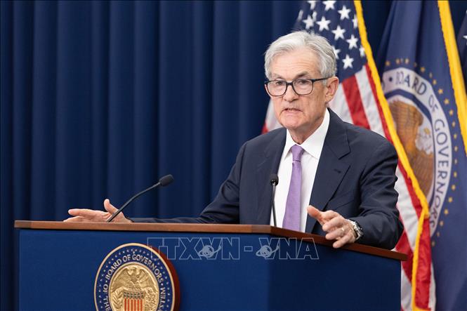 Chủ tịch Cục Dự trữ Liên bang Mỹ (Fed) Jerome Powell phát biểu tại cuộc họp báo ở Washington, D.C.