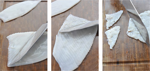 Khi khía mực xong thì bạn thái miếng hình tam giác.