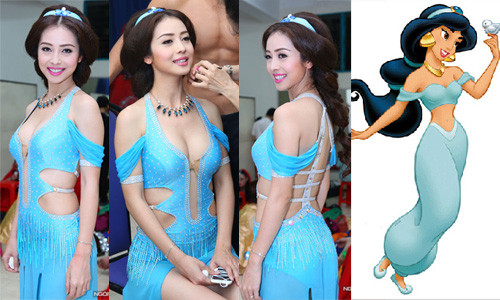 Trong chương trình "Cặp đôi Hoàn hảo" tối 16/11, nữ MC hóa thành công chúa Jasmine nhưng với bộ trang phục thiếu kín đáo. Đây không phải là lần đầu tiên Jennifer Phạm mắc lỗi về cách ăn mặc.