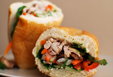- Lưu ý: loại bánh mì gà này không dùng kèm với đồ chua sẽ làm át mất vị, chỉ ăn đơn giản như vậy rất ngon, nhưng nếu muốn có thêm chất rau các bạn có thể kẹp thêm với ít lá xà lách mềm hoặc vài lá mùi.