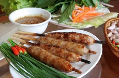 Trộn chung thịt + tôm + mỡ lại cho đều, nêm chút muối + đường + tiêu + bột ngọt, nướng thử xem vừa ăn là được. Vò thành viên vừa ăn, ghim vào cây sắt nhọn, nướng lửa than.
