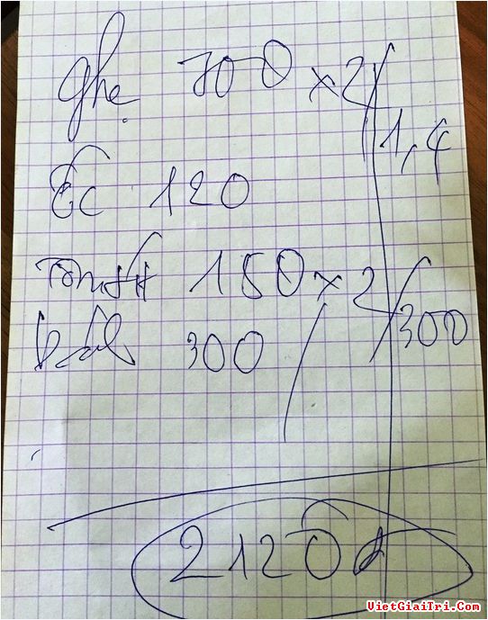 Tờ hóa đơn tính tiền được cho là của nhóm anh Long khi tới TP.Vũng Tàu du lịch vào dịp Tết Dương lịch vừa qua.