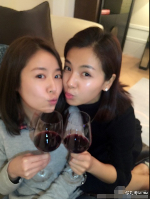 Lâm Tâm Như và Lưu Đào cùng nâng li chúc mừng sinh nhật rất ngọt ngào và vui vẻ.