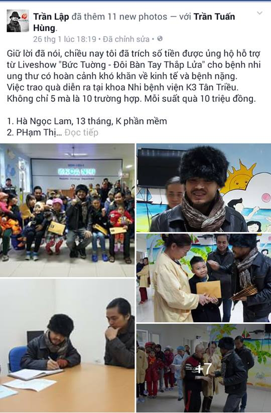 Old  Default Trần Lập hốc hác vì ung thư vẫn chia sẻ và ủng hộ từ thiện cho những bé đồng cảnh ngộ