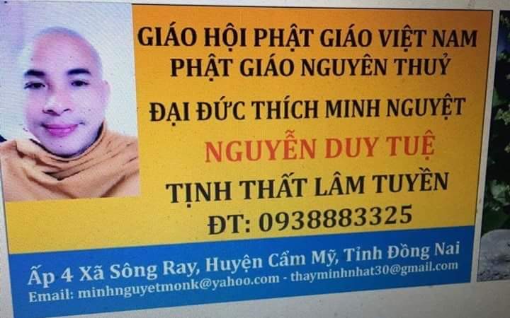 Tên đời của hắn là Nguyễn Duy Tuệ sinh ngay 30/5/1978 ngụ tại số 87/11 Lê Thị Thoa phường Bình Chiểu quận Thủ Đức. Trước hắn ở chùa Phước sơn. Giờ người này thường ở Tịnh Thất Lam Tuyền xã Sông Ray huyện Cẩm Mỹ tỉnh Đồng Nai. Nhà ông ta ở Thủ Đức, hay mặc đồ đời thường lúc mặc áo tu sĩ hỏi ai gần chùa Bửu Quang cũng biết.