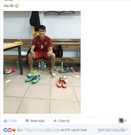 Ngay sau giờ phút hạnh phúc cùng đồng đội, Công Vinh đã đăng tải hình ảnh ngồi trong phòng thay đồ, với nụ cười vô cùng rạng rỡ. Kèm theo đó là dòng chú thích vô cùng ngắn gọn và đơn giản: “Vui rồi”. Tưởng chừng như tất cả các fan hâm mộ của CV7 sẽ có cùng cảm xúc đó, nhưng thực tế lại có nhiều ý kiến trái chiều. Sau khi bức ảnh xuất hiện trên trang cá nhân, chàng cầu thủ xứ Nghệ bất ngờ bị khá nhiều người tỏ thái độ bất bình.
