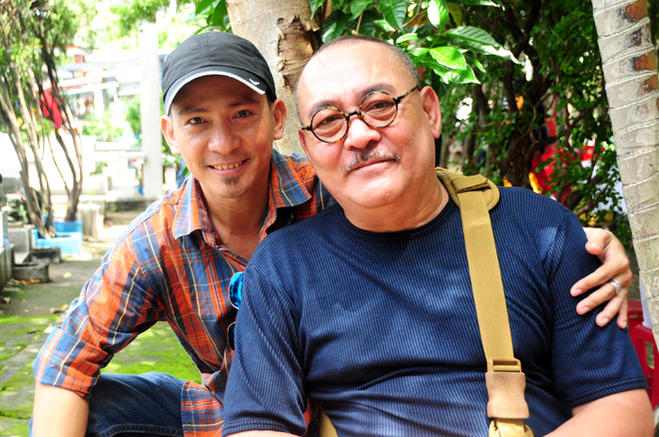 Đạo diễn Trần Quang Đại (phải) và Hoàng Hải Đăng, người em thân tình của Lê Công trong ngày giỗ. Quang Đại là người từng gắn bó với Lê Công trong công việc lẫn trong cuộc sống thường nhật. Thời ấy, ông được Lê Công Tuấn Anh hết mực kính trọng và yêu thương.