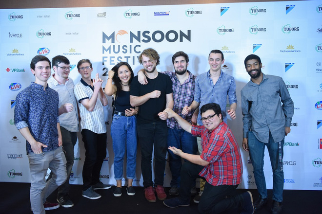 Anna Trương cùng ban nhạc Lands tại buổi họp báo ra mắt Monsoon Music Festival 2016.