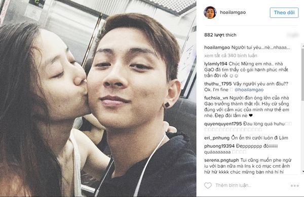Trên trang mạng xã hội Instagram của Hoài Lâm, đăng tải hình ảnh một cô gái thân thiết hôn má anh, kèm theo tựa đề: "Người yêu tôi nè" khiến nhiều người không khỏi bất ngờ.