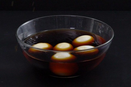 - Cho trứng đã bóc vỏ vào bát ngâm trong ít nhất 8 tiếng, hoặc để qua đêm.