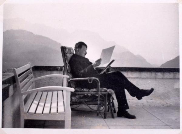 Cuốn album được tìm thấy trong ngăn kéo tại phòng ngủ của Eva Braun, người tình tóc vàng của Hitler, với các bức ảnh ghi lại những khoảnh khắc thư giãn của trùm phát xít và các phụ tá thân cận trong Thế chiến II. Trong ảnh, Hitler đang chào hỏi nhóm người đứng ngoài trụ sở Berghof ở Obersalzberg.