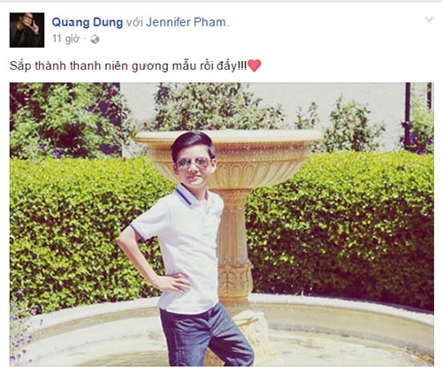 Mới đây, trên facebook cá nhân của mình, Quang Dũng bất ngờ khoe ảnh con trai và thậm chí còn “tag” Jennifer Phạm vào bài đăng.