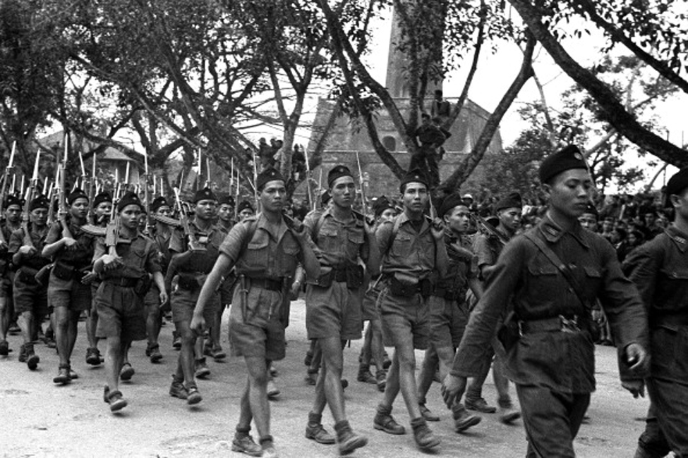 Bộ đội diễu hành trên đường phố Hà Nội, 1946