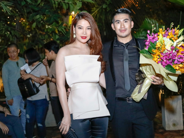 Cô diện trang phục giản dị nhưng không kém phần gợi cảm khi khoe vai trần.