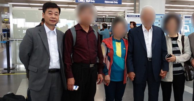 Giáo sư Kim Hak Song (ngoài cùng bên trái), mới bị Triều Tiên bắt giữ.