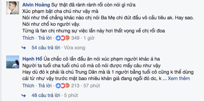 Khán giả chỉ trích Hương Giang Idol ngay trên trang cá nhân của cô. Ảnh: Chụp màn hình.