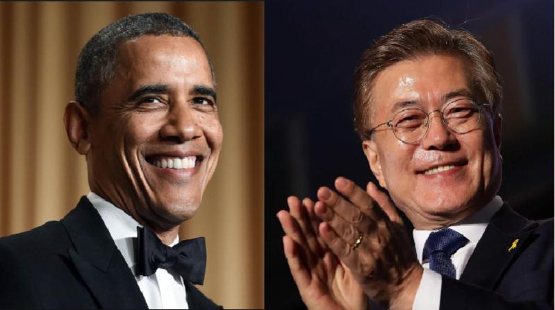 Moonbama: ông Moon Jae-in (phải) có nhiều nét giống vị tổng thống rất được yêu thích của Mỹ, Barack Obama
