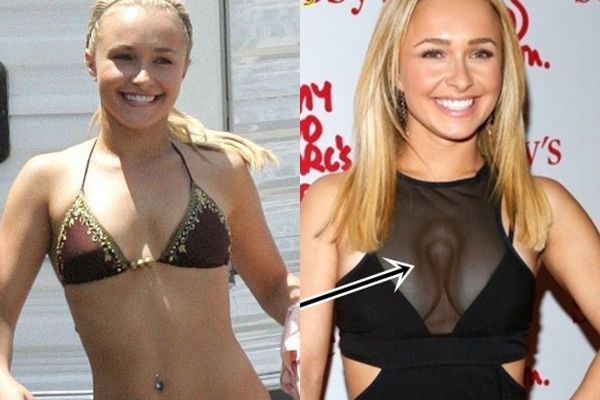 Hayden Panettiere vốn có vòng một khiêm tốn nên đã thực hiện phẫu thuật nâng ngực. Tuy nhiên, bộ ngực của cô bị biến dạng nghiêm trọng, tạo nên những vết lõm đáng sợ ở khe ngực.