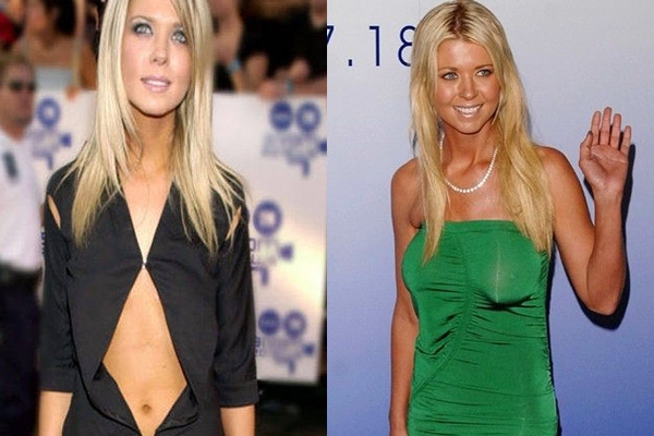 Tara Reid nâng ngực để cải thiện vòng một lép kẹp song kết quả nhận lại không được như ý. Bộ ngực của cô mất cân đối, chảy xệ nghiêm trọng.