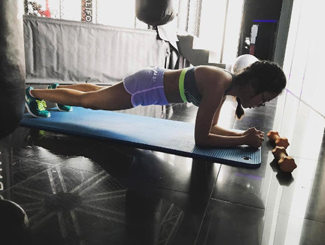 Trong kỳ nghỉ hè, Phương Mỹ Chi tranh thủ đến phòng gym.