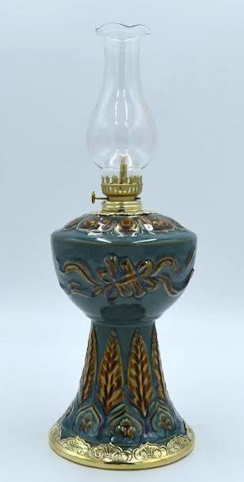 Chiếc đèn Hoa Kỳ độc bản làm từ gốm Bát Tràng phủ men thanh lưu ly được Thủ tướng Nguyễn Xuân Phúc tặng Tổng thống Mỹ Donald Trump trong cuộc hội đàm tại Nhà Trắng.