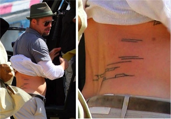 Hình xăm trên lưng Brad Pitt vốn là một dấu ấn mà Angelina Jolie vẽ lại trong một đêm rảnh rỗi họ ở Davos.