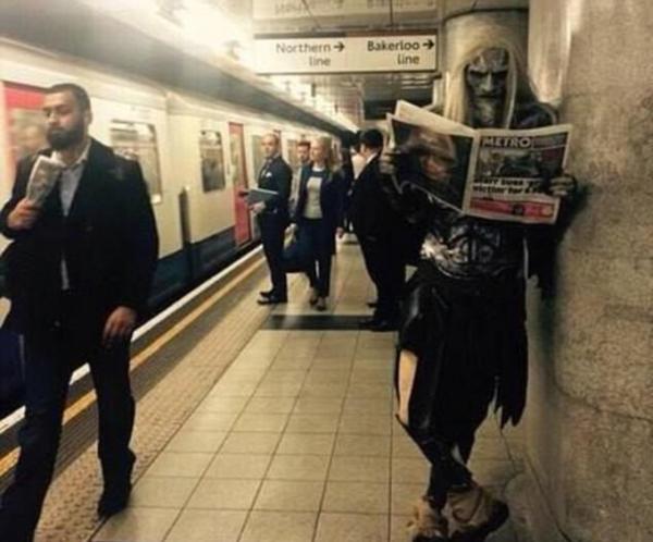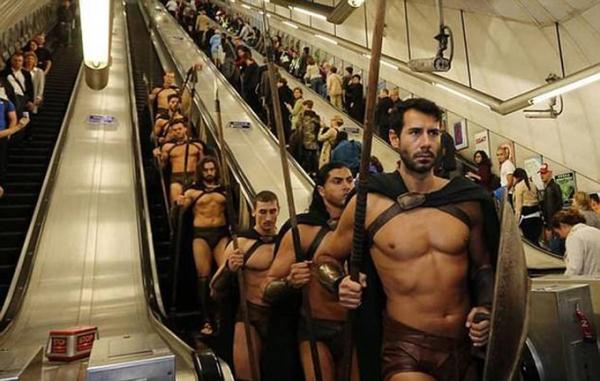 Sự xuất hiện của một nhóm đấu sĩ tại nhà ga tàu điện ngầm London, Anh đã khiến không ít người tò mò ngoái nhìn. Tác giả bức ảnh này cho biết, anh cũng là một trong số đó.