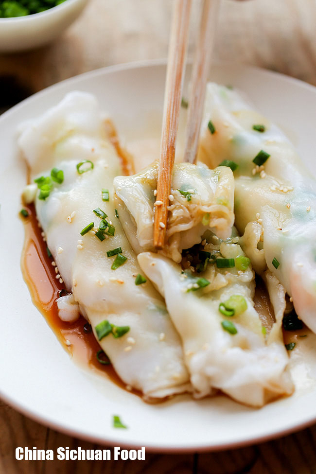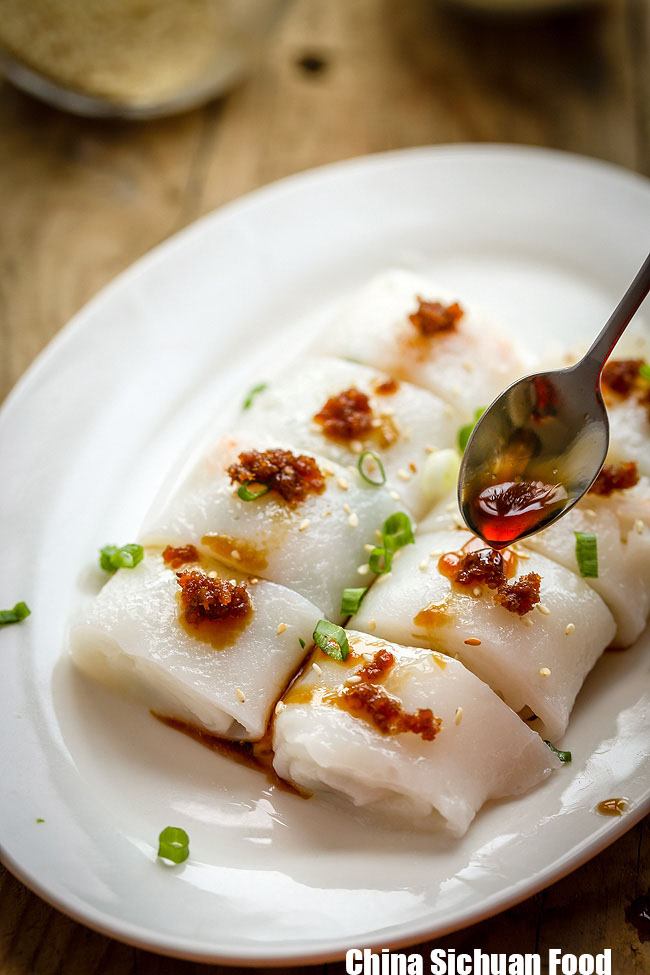 - Khi ăn, rưới nước sốt lên bánh cuốn và rắc thêm chút hành lá. Bạn có thể để nguyên hoặc cắt thành miếng nhỏ vừa ăn đều được.