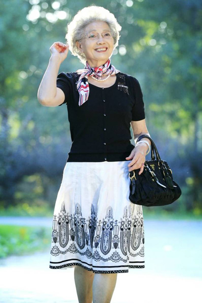 Gương mặt của bà cụ lúc nào cũng tươi trẻ, truyền sức sống cho các bộ váy, quần áo mà bà đang mặc.