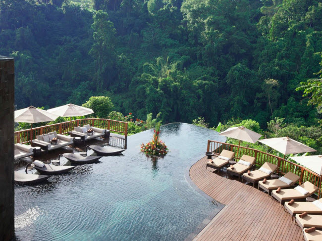 Các cặp đôi nghỉ tuần trăng mật nên lựa chọn khu nghỉ dưỡng Hanging Gardens khi tới Bali. Đây là khách sạn đẳng cấp 7 sao bao gồm các biệt thự riêng sang trọng nằm trên sườn đồi ở ngoại ô thị trấn Ubud.