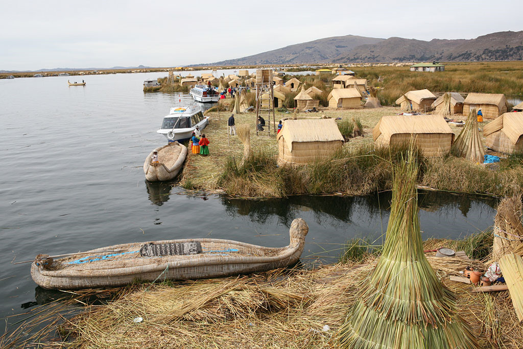 Nằm trên hồ Titicaca cao nhất thế giới có thể đi thuyền được (3813 m so vơí mực nước biển), quần đảo Uros kì lạ (khoảng 43 đảo) được hình thành từ những lớp totora (lau sậy) chết đóng thành từng mảng dày.
