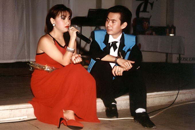 Ca sĩ Cẩm Vân với mái tóc ngắn đã thành thương hiệu. Đoan Trường (phải) chia sẻ thời điểm ấy, anh làm MC cho các đêm nhạc quy tụ nhiều đồng nghiệp thân thiết.