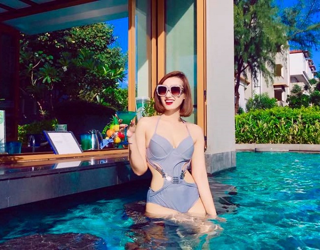 Tuyển tập đồ bơi hai mảnh giúp Thanh Vân khoe dáng gợi cảm.