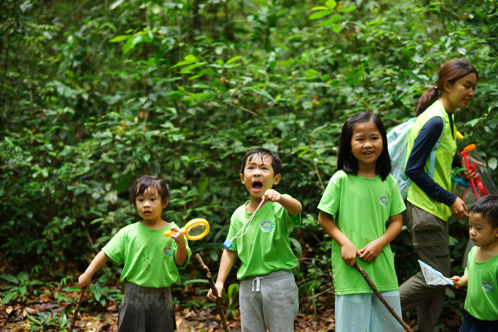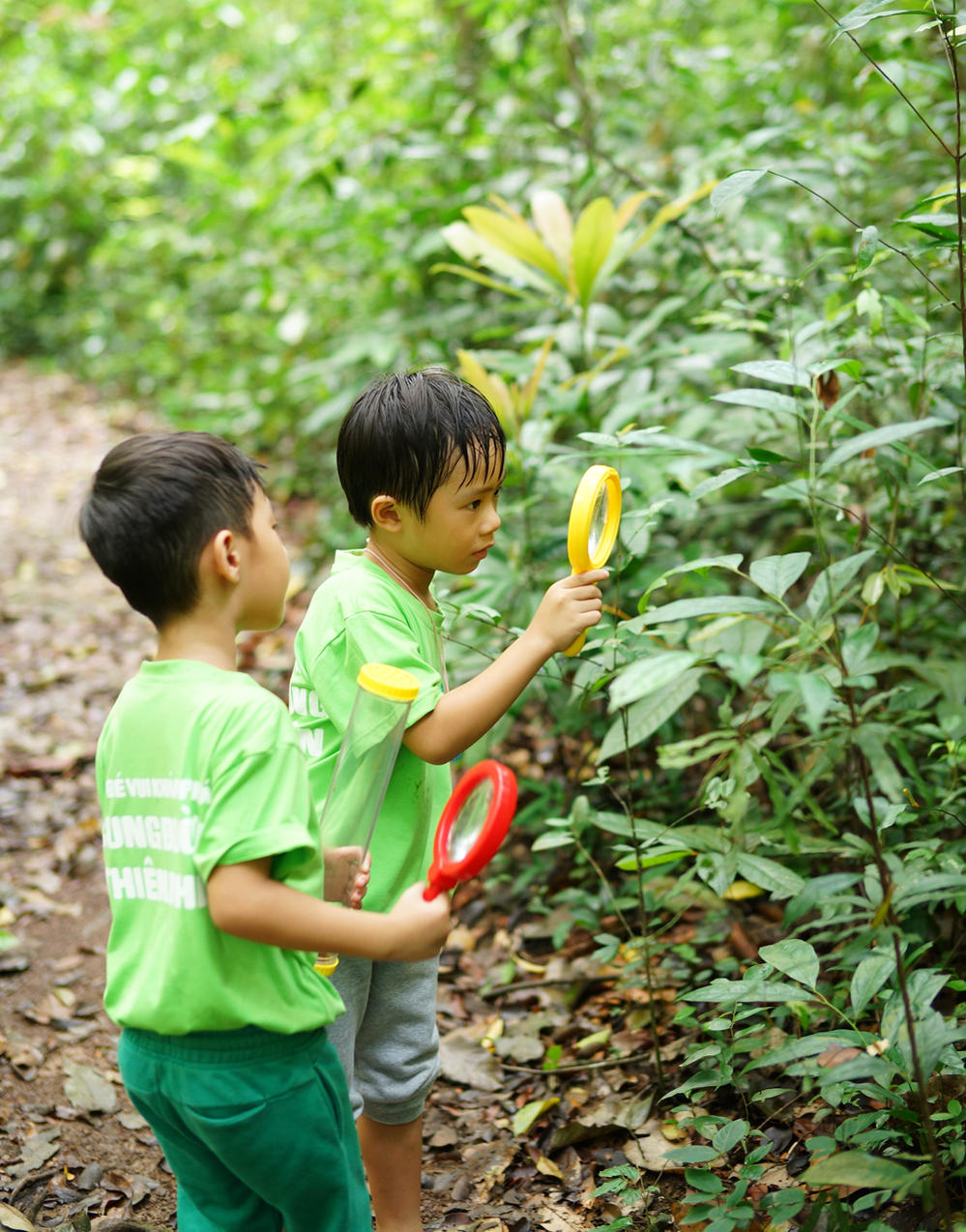 Được đi dã ngoại cùng bố mẹ, hai bé Rio và Cherry tỏ ra rất thích thú và nhiệt tình tham gia các hoạt động như đi xe đạp thăng bằng trên quãng đường rừng 3km để tìm hiểu về các loại cây cối, côn trùng.