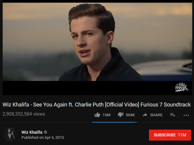 MV của ca khúc "See You Again" đã có số lượng lượt xem lên đến gần 2 tỉ lượt. "See You Again" đã chính thức vượt mặt "Gangnam Style" về số lượt xem trên youtube. Dưới đây là lý do để "See You Again" đạt được thành tích đó.
