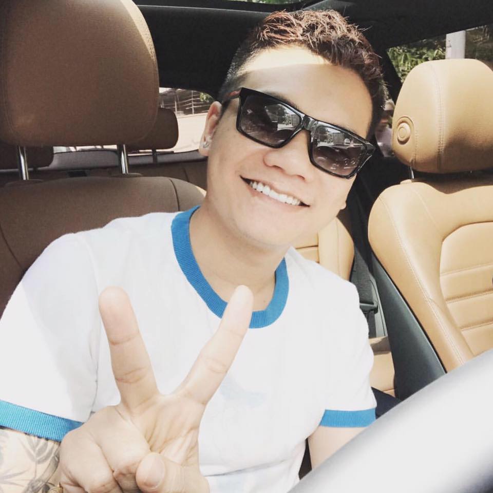 Khắc Việt giơ biểu tượng chiến thắng khi thông báo tin đính hôn