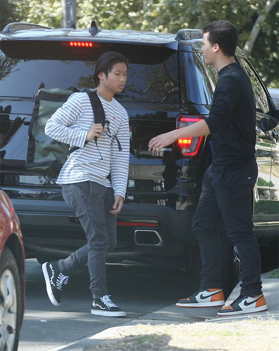 Pax Thiên được trông thấy tại bãi đỗ xe ở Los Angeles để chuẩn bị lên đường tham gia chuyến dã ngoại.