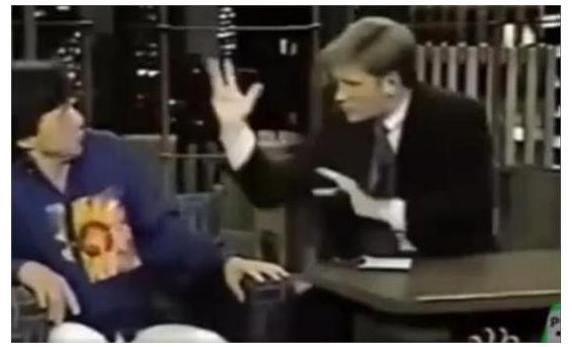 Là một ngôi sao kungfu, Thành Long chẳng phải hạng dễ bị bắt nạt. Bàn tay của vị MC chỉ sắp chạm mặt, Thành Long ngay lập tức đã tung chân phản đòn khiến tất cả mọi người ngỡ ngàng. Biết không nên đùa với lửa, nam MC sau đó ngồi “ngoan như cún” cho tới cuối chương trình.