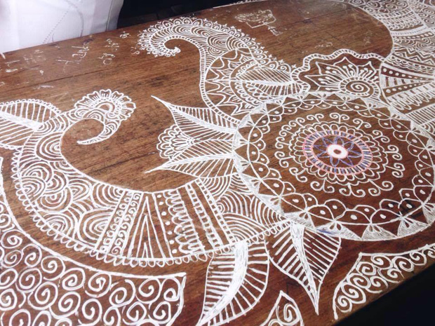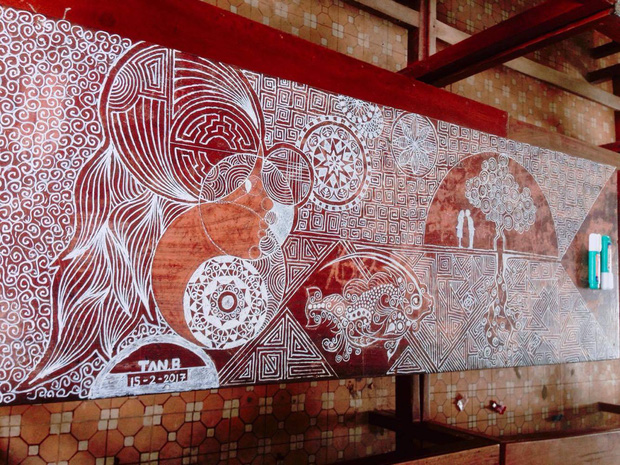 Bùi Ngọc Tấn đã biến chiếc bàn học cũ trở thành một tác phẩm khá độc đáo và thú vị. Điều đặc biệt là 9x Đà Nẵng chỉ dùng một chiếc bút xóa. Những chiếc bàn học cũ kỹ trở thành bức tranh cực ấn tượng.