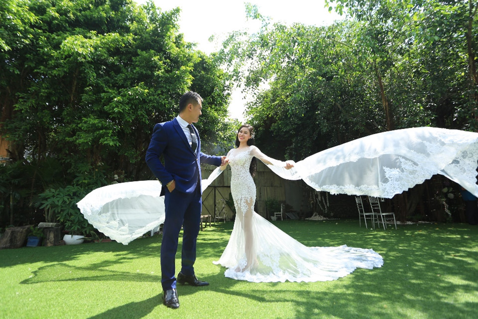 Anh cho biết bộ ảnh cưới được anh thực hiện cách đây một năm. Cả hai tạo dáng tinh nghịch trước ống kính.