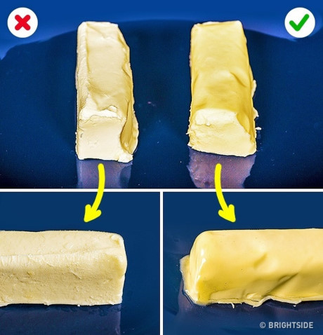 Bơ động vật (butter) được chế biến từ phần chất béo của sữa bò trong khi bơ thực vật (margarine) là sản phẩm của các loại dầu tinh chế ví dụ như dầu thực vật. Bơ thực vật có giá thành rẻ hơn nên một số nhà sản xuất cũng có thể dùng để đánh lừa người tiêu dùng. Để phân biệt 2 loại bơ này, bạn hãy đặt một miếng bơ vào nước sôi. Bơ động vật sẽ nhanh chóng tan chảy và tạo thành một lớp trên bề mặt còn bơ thực vật sẽ đông lại thành cục.