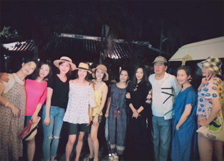 Hee Sun (thứ hai từ phải sang) nhí nhảnh chụp ảnh.