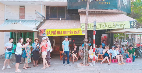 Đoàn phim thưởng thức cà phê Việt.