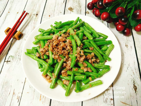 Món đậu đũa xào thịt băm có màu xanh mát mắt, thơm giòn sẽ gúp bữa cơm gia đình thêm hấp dẫn.